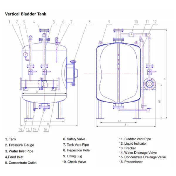 Foam bladder tank consists of a pressure tank, rubber bladder, proportioner, control valves, and pipelines. Pressurized water is needed to swap out foam concentrate from the bladder in the tank as a certain proportion. Foam concentrate then mix with pressurized water and become foam solution. There is feed inlet to refill or change foam concentrate for the tank.